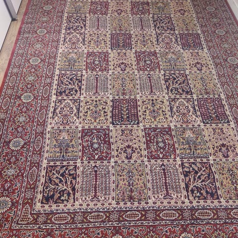 IKEA teppe i rødt med orientalsk inspirert mønster. Rektangulær fasong med frynser på kortsidene. Passer for bruk i stue, gang eller soverom. Materiale og nøyaktige mål er ikke oppgitt.