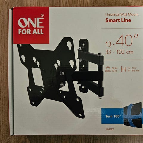 Helt nytt universal tv veggfeste. Bare åpnet esken men helt ubrukt. Kjøpt ny for 999,- på Elkjøp. Selges for 650kr