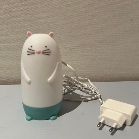 Selger en populær nattlampe for barn som lyser i forskjellige farger og skaper en trygg og koselig stemning på barnerommet.