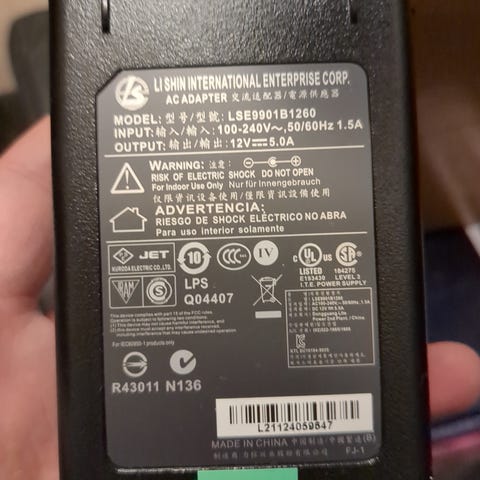 - Type: Switch mode strømforsyning / adapter