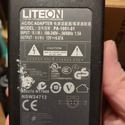 Li Shin LSE9801B1260 AC-adapter med utgang 12V 5A.