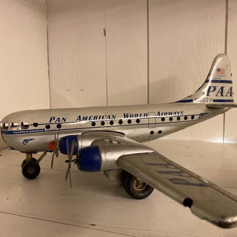 Flymodell: Det er en modell av SAS Douglas DC-7, spesifikt navngitt "Halvdan Viking" på skroget.