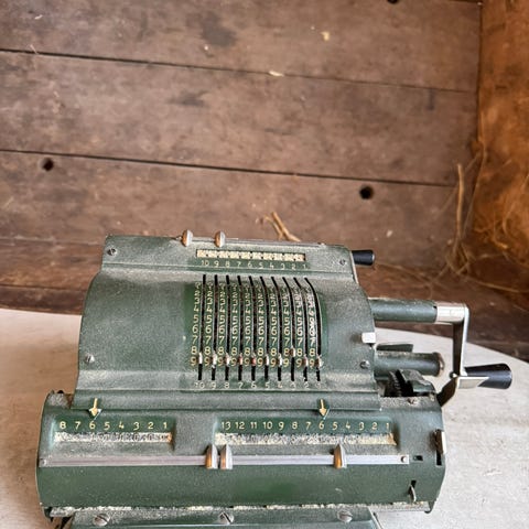 Brunsviga mekanisk regnemaskin i metall med svart overflate. Maskinen har roterende sylinder med tallskiver og betjeningshendler for innstilling og utregning. Den har egen resultatlinje med vinduer for avlesning av tall. Egner seg som funksjonell mekanisk regnemaskin eller som teknisk og historisk kontorobjekt til samling eller utstilling. Fra begynnelsen av 1900-1905 tallet