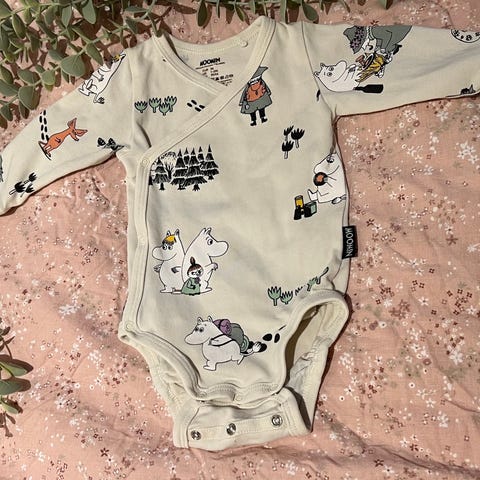 Lindex Mummi omslagsbody i bomull, størrelse 62, unisex. Kun brukt få ganger av 1 barn i kort tid slutten av 2025. Alltid vasket med parfymefritt vaskemiddel. Dyr-og røykfritt hjem.