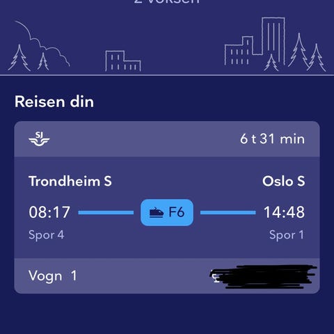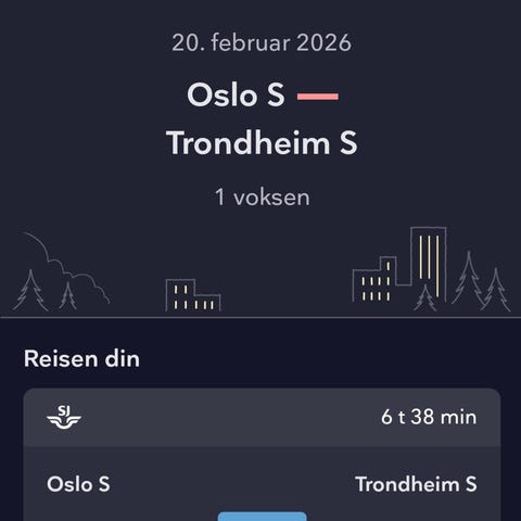 SJ togbillett 11.3 Oslo S til Trondheim S
