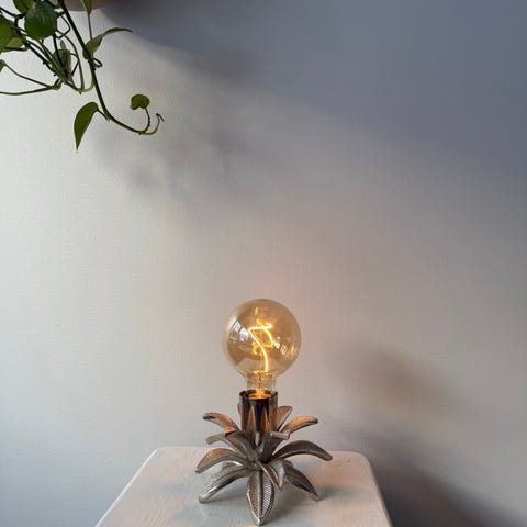 Ananaslampe kjøpt på Zara Home for mange år siden. Veldig pen (og tung!) lampe. Noen bruksmerker her og der på lampeskjermen, den har stått i en kjeller ubrukt i noen år. Normal lyspæresokkel.