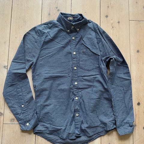 Hollister Epic Flex skjorte for herre i størrelse XS. Skjorten er laget i bomull med stretch og har blått rutemønster. Modellen har lange ermer, knappelukking foran og klassisk krage. Passer til hverdagsbruk og uformelle anledninger.