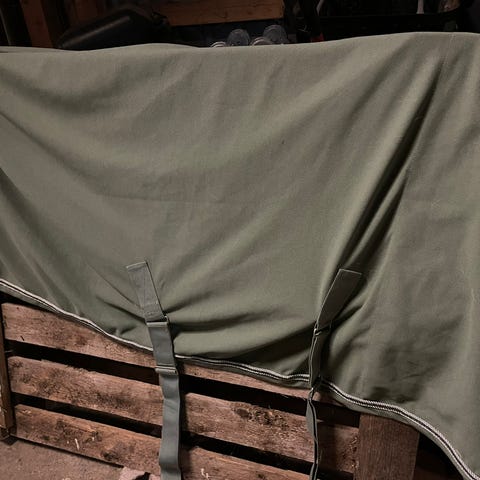 Horze fleece dekken str 135. Har noen hull i seg. Går an å sy det sammen