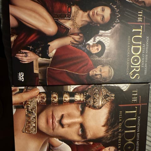 The Tudors sesong 1–2 DVD-bokser. Historisk dramaserie om Henrik VIII og det engelske hoffet. Utgivelsen består av to separate DVD-bokser som dekker hele første og andre sesong. Boksene inneholder flere episoder per plate samt ekstramateriale som intervjuer og bakomklipp, avhengig av utgave. Lyd- og tekstspråk følger spesifikasjonene på baksiden av coveret, med opplysninger om blant annet spilletid, aldersgrense og format (regionkode, bildeformat og lydspor). Passer for seere som ønsker en kostymedrama-serie satt til Tudor-tiden i England.