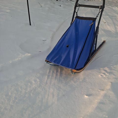 Skivebremser på alle tre hjul, demper i front. Følger med drag til to hunder.