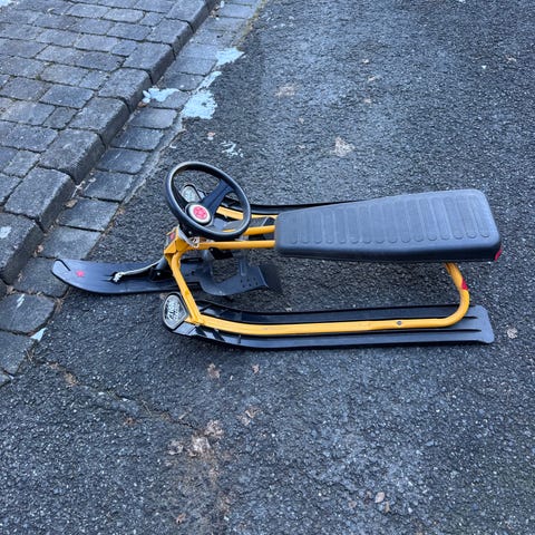 Stiga Snowracer rattkjelke selges da den ikke er i bruk. Med snor og ratt