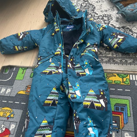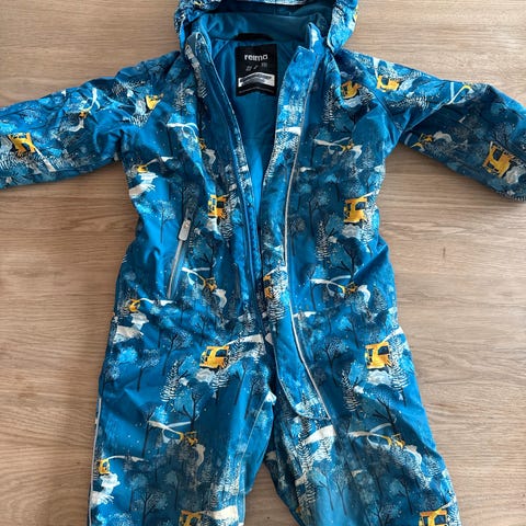 ReimaTec toddlers' lightweight snowsuit. Water- and windproof, so it's great for days out. Has an insulated seat and a long zipper.