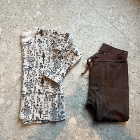 Et nytt, vakkert vårsett i ull, størrelse 92, dessverre likte ikke sønnen min dette materialet, og jeg må selge det, det ser enda finere ut i virkeligheten.