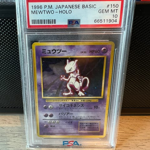 Mewtwo GX #78 ifra Pokemon Shining Legends PSA 10, selges litt under last sold på ebay.
