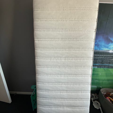 Eldre madrass med avtagbart trekk. Usikker på hvor den er kjøpt ny. Selv fått med ved kjøp av brukt seng. Brukt til ett barn her fra 12-15 år. Madrassen er ok til barn. Men litt lite spenst i fjærene for voksen ungdom. Fungerer greit som gjestemadrass.