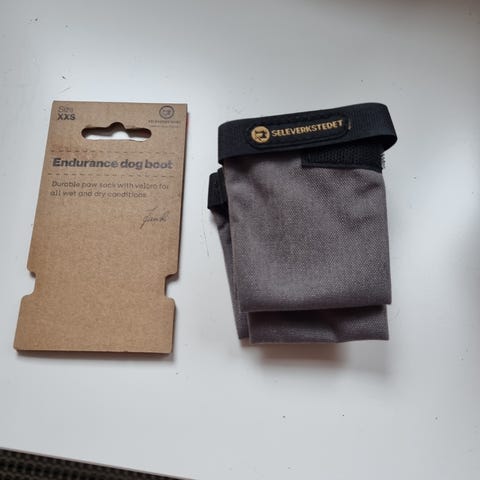 Potesokkene er brukt til en Lhasa Apso på 8 kg.
