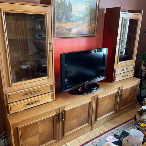 Lord glassvitrine med underskap og tv benk i Valnøtt