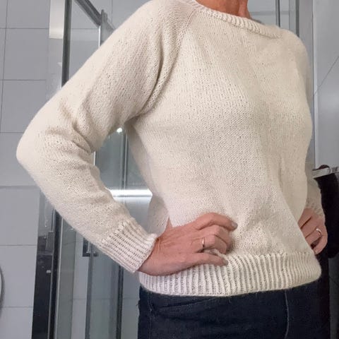 Lyseblå genser strikket i Drops Air, 65% alpakka, 28% polyamid, 7% ull. 100% kløfritt 😍