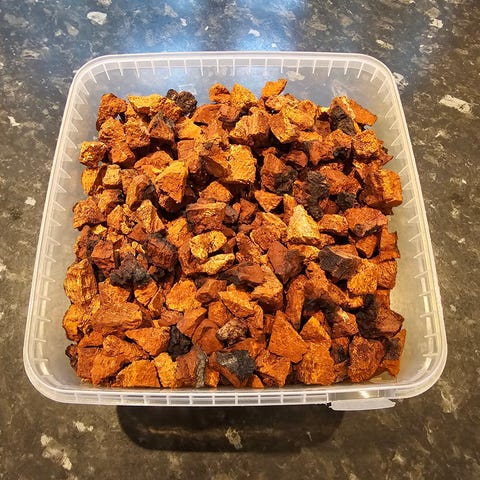 Chaga i biter selges. Perfekt til å lage te, uttrekk og tinktur.