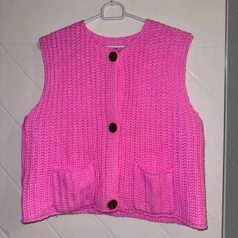 Selger en chunky strikket vest fra Zara i nydelig olivengrønn farge. Vesten har grov struktur og to lommer og store «gull» knapper. God passform og myk vest. Aldri blitt brukt.