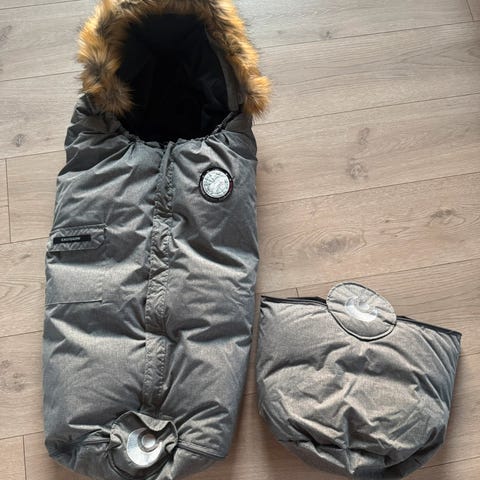 Veldig pent brukt vognpose i en nydelig rosafarge. Følger med forelngerdel.