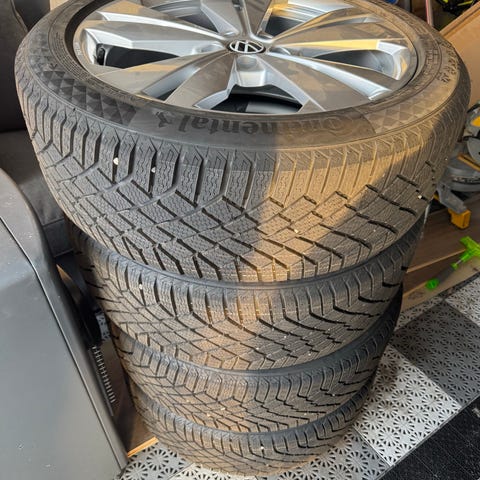 Komplette hjul på original felg til mustang mach e. Vinterdekk som står på har mønsterdybde ca 5 på 2 stk og ca 7 på 2 stk.