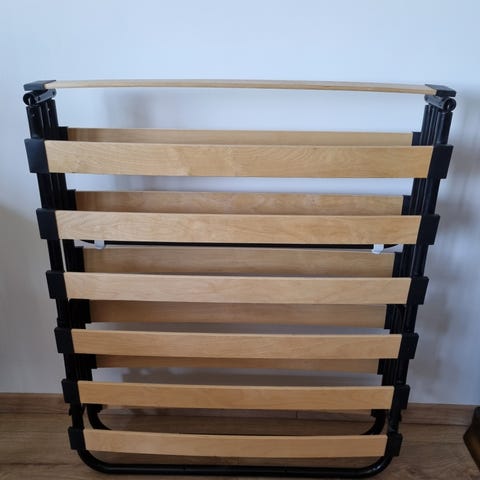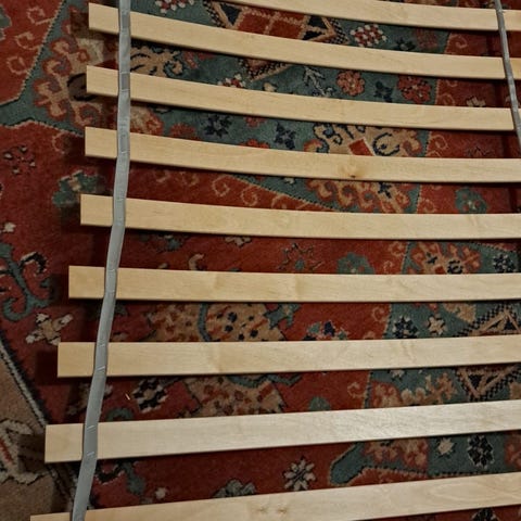 Pent brukt sengebunn fra Jysk selges. Det sorte båndet har røket to steder, se avmerket på bilde.