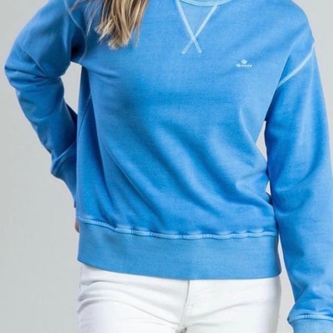 GANT collegegenser for dame i størrelse L. Genseren er hvit med stor GANT-logo og motiv på brystet.