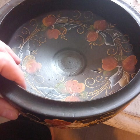 Kan henges på veggen, vakkert mønster med gullkant, veldig god stand