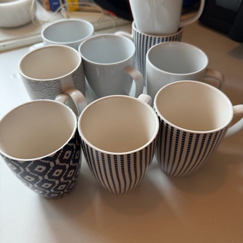 GANT krus i ulike design. Selges primært samlet, evt. kan de deles opp, men da blir prisen høyere. 450 for alle samlet eller 100 kr pr krus solgt separat evt.