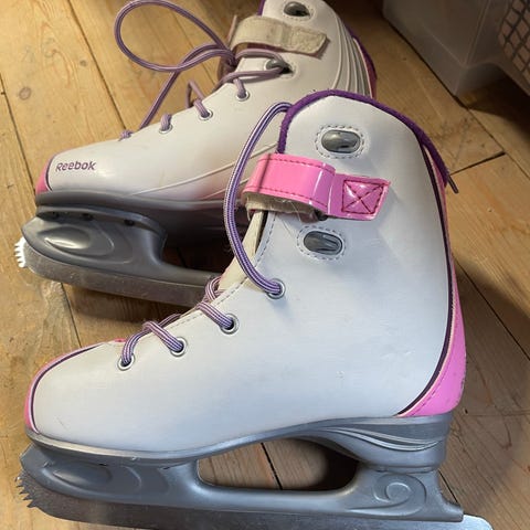 Står ikke str i skøytene, men jentene her har vært ca str 34 når de har brukt de. Kan prøves på. Må hentes på Laksevåg.
