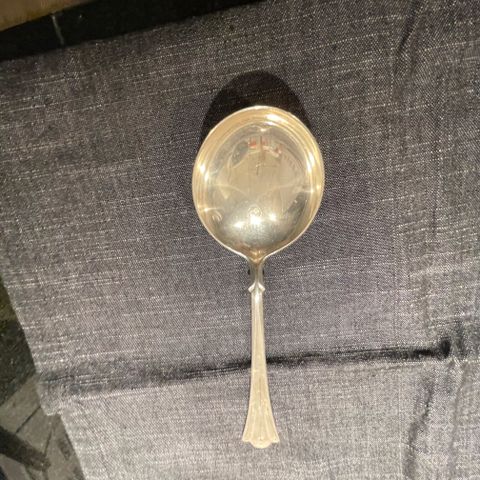 Sausøse i sølv. Øsen har rund, dyp skål og rillet skaft med dekor nederst. Arvesølv .Vekten er ca. 51 gram. Egnet til servering av saus . 17,5 cm.