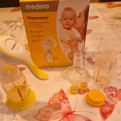 Følger med brystskjold i str.21 og 24. Pent brukt og sterilisert etter bruksanvisning. 💕 følger også med en ekstra flaske uåpnet.