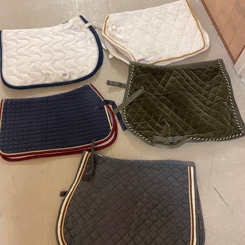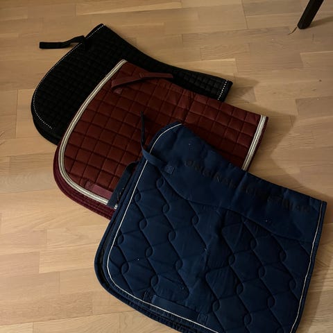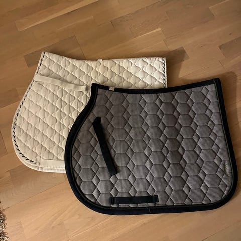 Lite brukte sjabraker i gul og blå selges billig sammen. En dressur og en allround.