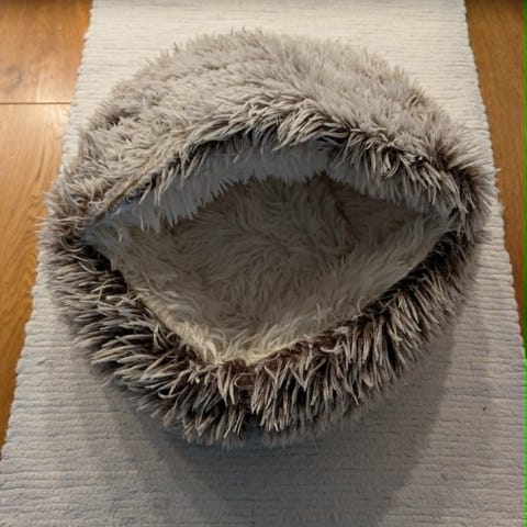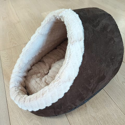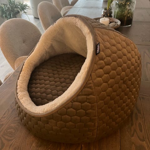 Fin katteseng som dessverre ikke ble brukt hos oss, kjøpt på dyrebutikk (ikke Temu!)