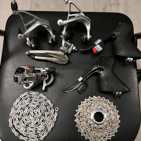 Bakgir,frontskifter, høyre og venstre skifter,bremsekalipper foran og bak,kassett 34-11 og 11speed kjede