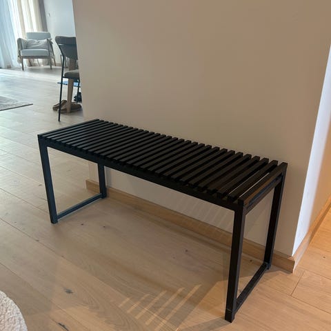 IKEA Sigurd benk i hvit . Rektangulær med enkle ben. Kan også brukes som bord. Passer like bra ved kjøkkenbordet som i gangen. Mål 38x45x110