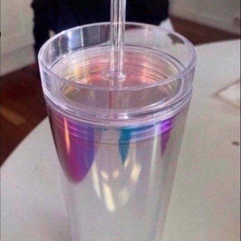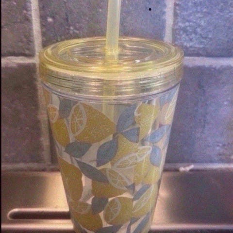 drikkebeger med sugerør i rosa. Egnet for kald drikke og gjenbruk.