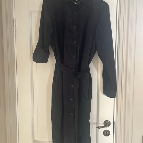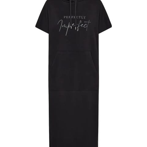 Soyaconcept hverdagskjole for dame i størrelse L. Kjolen er svart og laget i modalblanding, som gir et mykt og behagelig materiale. Modellen har kort erm, hette med snøring og kengurulomme foran. Lengden ca 112 cm.
