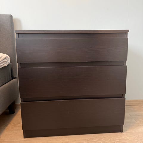 IKEAs Malm sjenk selges for 500 kr. Brukt i 5 år, med noe merker på toppen