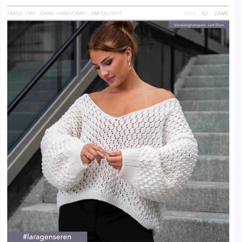 Strikkepakken inneholder alt garn opptil str L. Oppskrift på pdf- fil får du pr mail/mld av meg 🌺