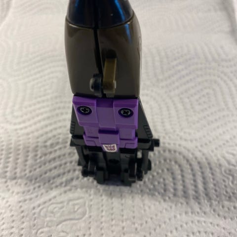 Transformers lekefigur utformet som et jagerfly i blå og grå plast. Figuren har bevegelige deler i vingene og kroppen, med trykte detaljer og merker på vingene. Egnet som samleleke eller til lek for barn som liker actionfigurer og kjøretøy. Størrelse og nøyaktig modellnavn er ikke oppgitt.