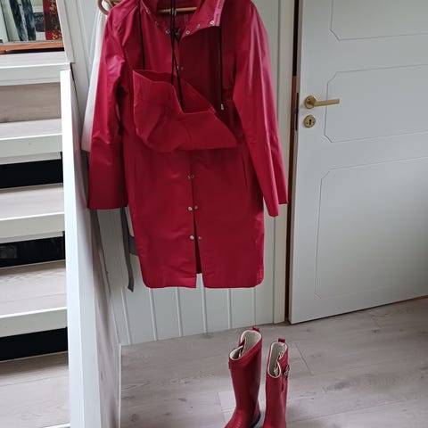 Ilse Jacobsen regnfrakk m sydvest, str XL og brukt en gang. Intresse no bud Sender mot forskudd og porto