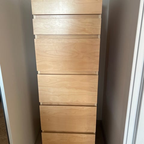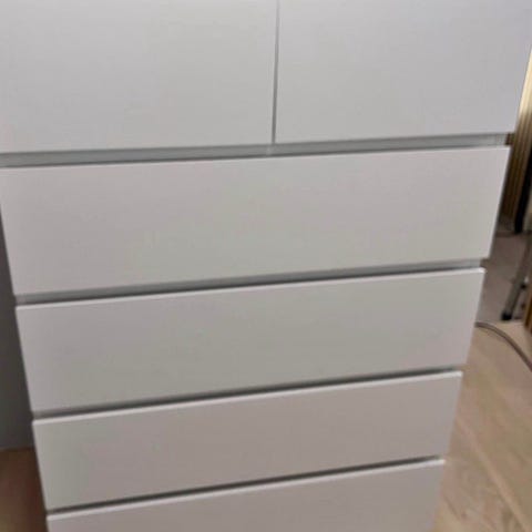 Den andre kommoden har 2 smale og 4 brede skuffer.