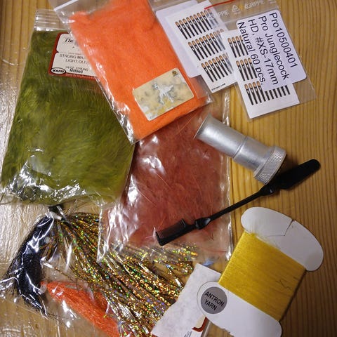 Følger også med linebehandling, fluepleie og noe vedlikeholdsutstyr. Alt er brukt, men det er fortsatt noe igjen i alt