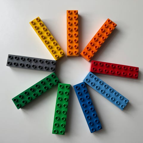 Selger fargerike LEGO Duplo klosser (2x6) i ulike farger. Perfekt som tillegg til eksisterende samling eller for kreativ bygging.