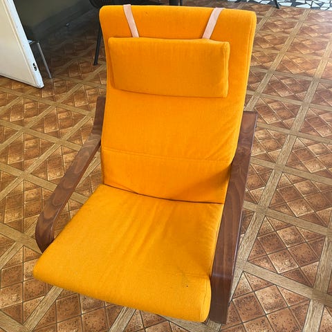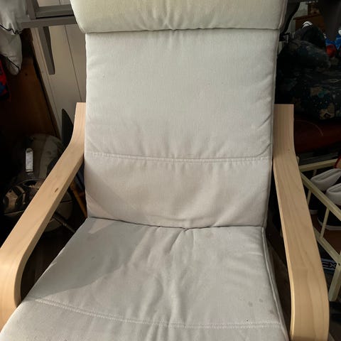 Pent brukt stol, pute-trekket til stolen kan vaskes for å freshe den litt ekstra opp.