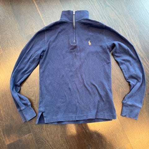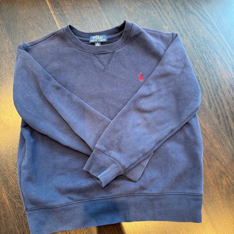 Polo Ralph Lauren genser for barn i størrelse M 10-12 vil anslå det tilsvarer str 152. Genseren er unisex og kommer i grå farge. Den er laget av bomull og har rund hals og lange ermer. Diskré logo på brystet. Passer til hverdagsbruk og kan kombineres med ulike underdeler som jeans eller joggebukse. Vasket en gang.
