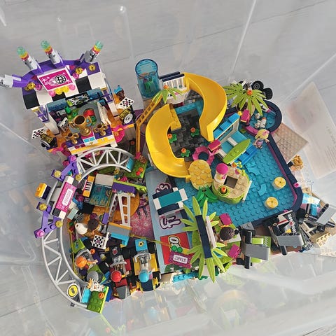 12 kg Lego med oppbevaringspose selges. Her er Lego fra mye rart, ninjago, Lego city, sonic, frost… Det er få figurer med. Mye ulike deler (se bilder). Posen er litt ødelagt, men fungerer fortsatt. Vi vasket nettopp logoen i badekaret med vann og grønnsåpe.