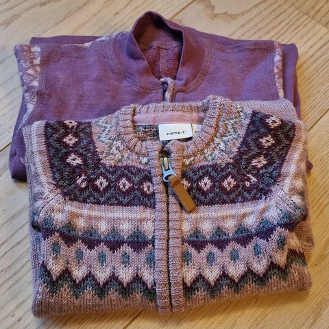 Name it heldress i ull i størrelse 68. Heldressen har flerfarget traktorprint og hel lengde med føtter. Den har lange ermer og åpnes/lukkes med knappestolpe foran. Ingen hull eller flekker.